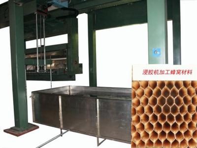 该套设备能适应各种孔格尺寸的蜂窝浸胶,尤其是小孔格大体积蜂窝。蜂窝密度能实现自动和机械控制;浸渍树脂浓度在0.85-1.00kg/m3可调,并配有自动加溶剂和树脂系统,搅拌及树脂密度检测及控制均能实现自动和半自动方式;且能对固化后密度实现预设重控制;烘干、称重和浸泡能反复进行;具有胶液排放方便、清洗简便,防爆,安全可靠,防尘及隔绝潮气,浸渍的蜂窝均匀、无富胶区、无花斑、力学性能均匀稳定等优势。
